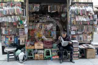 CIUDAD DE MÉXICO, 14FEBRERO2019.- Un kiosco de periódicos luce solitario, mientras su dueño se dedica a la lectura del periódico. FOTO: MOISÉS PABLO /CUARTOSCURO.COM