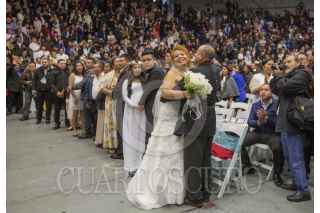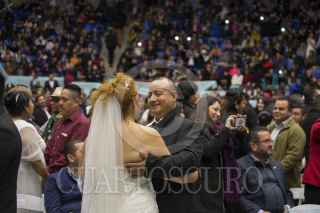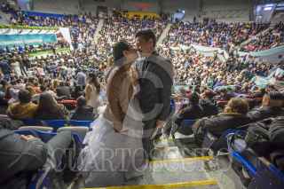TIJUANA BAJA CALIFORNIA, 14FEBRERO2019.- Se llevó a cabo la ceremonia en la cual mil 350 parejas reafirmaron su compromiso y contrajeron matrimonio en las instalaciones de Auditorio Municipal, en el marco del día del amor y la amistad. FOTO: OMAR MARTÍNEZ /CUARTOSCURO.COM