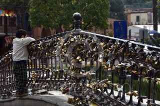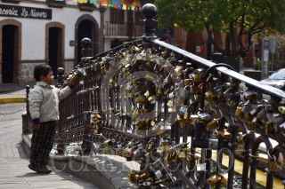 METEPEC, ESTADO DE MÉXICO, 14FEBRERO2019.- En el Jardín Benito Juárez en Metepec existe un Puente muy visitado por enamorados, en donde colocan candados para sellar su compromiso de amor, graban sus letras en los candados y los dejan en el puente, aventando la llave a la fuente. FOTO: ARTEMIO GUERRA BAZ /CUARTOSCURO.COM