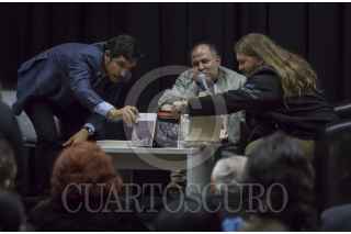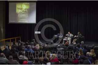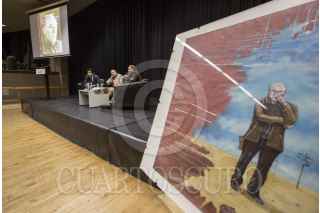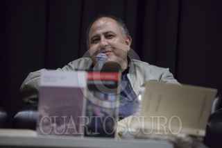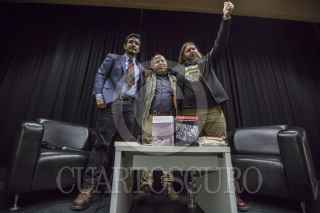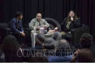 TIJUANA, BAJA CALIFORNIA, 15FEBRERO2019.- Vicente Alfonso, Federico Campbell Peña, hijo del escritor y Daniel Salinas Basave, durante el Homenaje In Memoriam del narrador tijuanense Federico Campbell, a cinco años de su ausencia, realizado en el Centro Cultural Tijuana. FOTO: OMAR MARTÍNEZ /CUARTOSCURO.COM