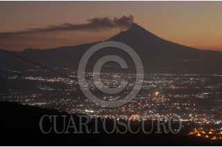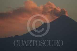 YAUTEPEC, MORELOS, 17FEBRERO2019.- El último reporte del Centro Nacional de Prevención de Desastres (CENAPRED), señala que esta madrugada el volcán Popocatépetl ha estado emitiendo constante vapor de agua y otros gases que se dispersan en dirección noreste, con una altura de 1.5 km. El semáforo de alerta volcánica se mantiene en amarillo fase 2. En la imagen el volcán Popocatépetl al amanecer de este día desde la Sierra de Montenegro. FOTO: MARGARITO PÉREZ RETANA /CUARTOSCURO.COM