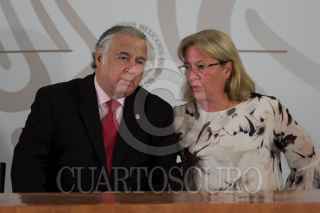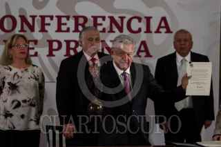 CIUDAD DE MÉXICO, 18FEBRERO2019.- Josefa González, titular de la Secretaria de Medio Ambiente; Miguel Torruco Márques, secretario de Turismo, y Francisco Garduño, comisionado del órgano administrativo desconcentrado de Prevención y Reinserción Social, durante la conferencia matutina del jefe del ejecutivo donde se firmo el decreto por el cual se aprueba el cierra de la prisión de las Islas Marías, para que esta sea transformada en un centro cultural y de educación ambiental. FOTO: GALO CAÑAS /CUARTOSCURO.COM
