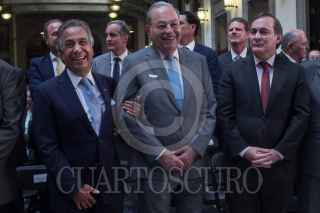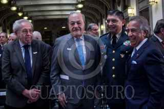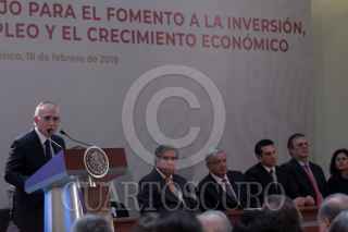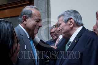 CIUDAD DE MÉXICO, 18FEBRERO2019.- Carlos Slim Helú, empresario mexicano, y Carlos Aceves del Olmo, dirigente nacional de la Confederación de Trabajadores de México (CTM), durante la instalación del consejo para el Fomento a la Inversión, el empleo y Crecimiento Económico, en el salón Tesorería del Palacio Nacional. FOTO: GALO CAÑAS /CUARTOSCURO.COM