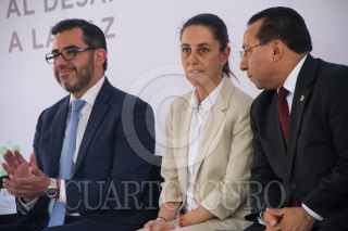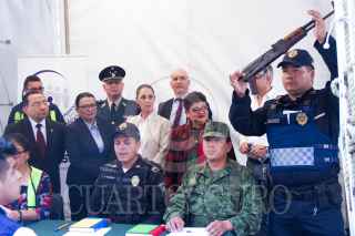 CIUDAD DE MÉXICO, 18FEBRERO2019.- La jefa del Gobierno de la Ciudad, Claudia Sheinbaum, acompañada de Rosa Icela Rodríguez, Jesús Orta, y Ernestina Godoy, encabezaron la ceremonia de despistolización, No a la Violencia, en el atrio de la Catedral Metropolitana de la Capital. FOTO: VICTORIA VALTIERRA / CUARTOSCURO.COM