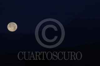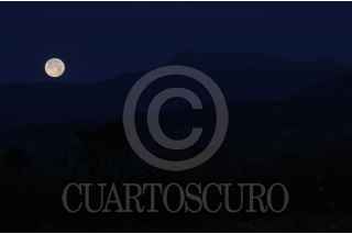 OCUILAN DE ARTEAGA, ESTADO DE MÉXICO, 19FEBRERO2019.- La super luna de nieve se oculta tras el lado sur del volcán Xinantecátl durante el amanecer de este día desde el paraje Las Trojes. El satélite se pudo observar un 14 % más grande y 30 % más brillante, un espectáculo que se repetirá hasta el 2026. La próxima super luna será el 21 de marzo. FOTO: MARGARITO PÉREZ RETANA /CUARTOSCURO.COM