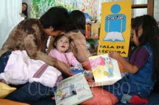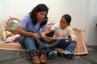 MEXICO, D.F. 16OCTUBRE2004.- Una madre le leyó un libro a su hija en la feria del libro que se realizó en el zócalo. FOTO: Iván Stephens/CUARTOSCURO.COM