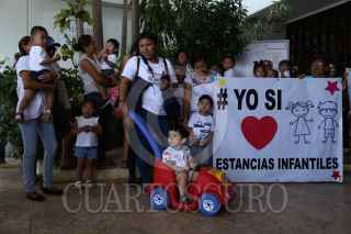CAMPECHE, CAMPECHE, 19FEBRERO2019.- En representación de 107 estancias infantiles de la entidad, directoras y madres de familia acompañadas de sus hijos, acudieron a las oficinas de la Secretaria de Bienestar (antes Sedesol) para protestar contra la reducción presupuestal que representa aproximadamente 2,000 millones de pesos para este año. FOTO: MARTÍN ZETINA /CUARTOSCURO.COM
