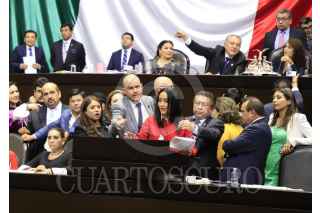 CIUDAD DE MÉXICO, 19FEBRERO2019.- Diputados panistas le arrebataron el micrófono a la secretaría Karla Almazán y tomaron la tribuna, durante la sesión el la Cámara de Diputados. FOTO: CUARTOSCURO.COM