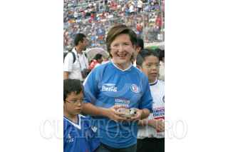 MEXDF16OCT2004.- Xochil Galvez, secretaria de Asuntos Indígenas asistiò a presenciar el partido del Cruz Azul contra Toluca. FOTO: Eunice Adorno/CUARTOSCURO.COM