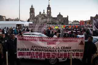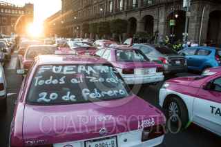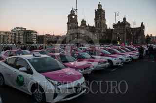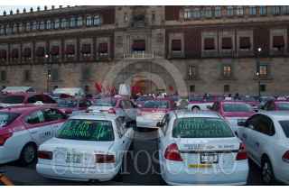 CIUDAD DE MÉXICO, 20FEBRERO2019.- Decenas de taxistas de la Ciudad y Estado de México, se manifestaron desde temprana hora frente al Palacio de Gobierno y alrededor de Zócalo Capitalino, para exigir a las autoridades que eliminen las plataformas de servicio de transporte que no cuentan con permiso y muchas de las cuales aseguran son piratas. El incremento de aplicaciones de movilidad les ha bajado al menso 45% de su ingreso, aseguran taxistas. FOTO: ANDREA MURCIA /CUARTOSCURO.COM