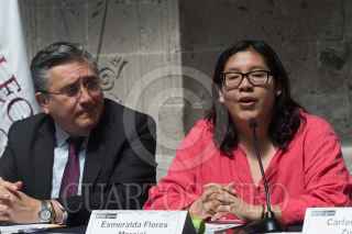 CIUDAD DE MÉXICO, 20FEBRERO2019.- Silvia Elena Giorguli Saucedo, presidenta del Colegio de México; Luis Raúl González Pérez, presidente de la Comisión Nacional de Derechos Humanos, y Esmeralda Flores Marcial, mexicana retornada de Estados Unidos, durante la inauguración del seminario "Migración de retorno y derechos humanos", en la sede de la CNDH, ubicada en la calle de Cuba en el Centro Histórico. FOTO: MOISÉS PABLO /CUARTOSCURO.COM