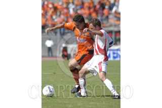Tuxtla,Gutièrrez Chiapas16OCT2004.- Victor Gutierrez, delantero de Jaguares pelea la pelota en el encuentro en que ambos conjuntos empataron. FOTO: Oscar León/CUARTOSCURO.COM