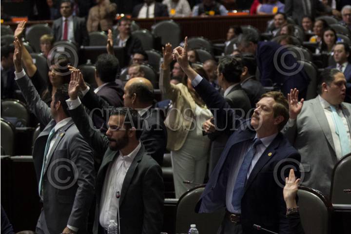 CIUDAD DE MÉXICO, 21FEBRERO2019.- Tonatiuh Bravo, coordinador de Movimiento Ciudadano, y Juan Carlos Romero Hicks, coordinador panista en diputados, durante la sesión ordinaria del palacio legislativo de San Lázaro. FOTO: GALO CAÑAS /CUARTOSCURO.COM