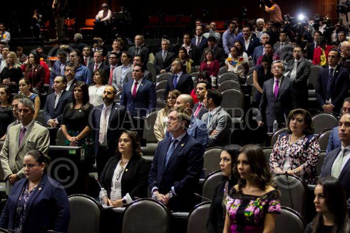 CIUDAD DE MÉXICO, 21FEBRERO2019.- Tonatiuh Bravo, coordinador de Movimiento Ciudadano, y Juan Carlos Romero Hicks, coordinador panista en diputados, durante la sesión ordinaria del palacio legislativo de San Lázaro. FOTO: GALO CAÑAS /CUARTOSCURO.COM