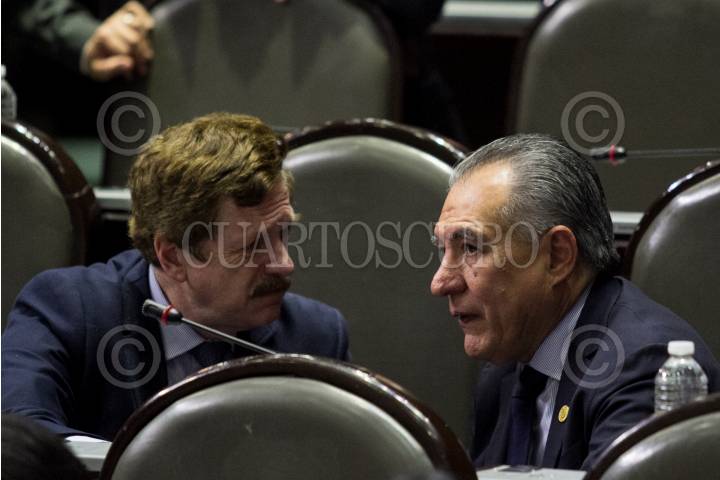 CIUDAD DE MÉXICO, 21FEBRERO2019.- Tonatiuh Bravo, coordinador de Movimiento Ciudadano, y Juan Carlos Romero Hicks, coordinador panista en diputados, durante la sesión ordinaria del palacio legislativo de San Lázaro. FOTO: GALO CAÑAS /CUARTOSCURO.COM