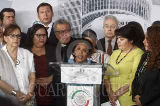CIUDAD DE MÉXICO, 21FEBRERO2019.- Obtilia Eugenio, activista guerrerense, y la senadora Nestora Salgado, encabezaron una conferencia de prensa con legisladoras de Morena. FOTO: ISAAC ESQUIVEL /CUARTOSCURO.COM