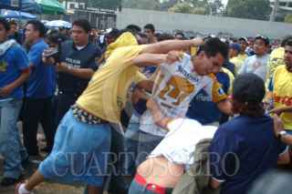 MEXICO, D.F. 17OCTUBRE2004.- Aficionados del equipo de futbol América golpearon a sus similares del equipo Pumas al terminar el encuentro afuera del estadio azteca. FOTO: Iván Stephens/CUARTOSCURO.COM