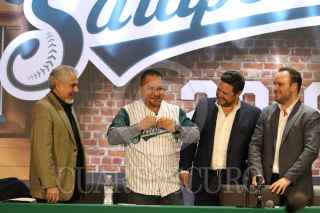 SALTILLO, COAHUILA, 21FEBRERO2019.- Los nuevos dueños del club Saraperos de Saltillo, Cesar Cantú García, Roberto Cabello, y Juan Carlos Saade presentaron el día de hoy al nuevo manager del equipo Roberto Vizcalla, para la próxima temporada 2019, así como la presentación del nuevo uniforme. FOTO: ALEJANDRO RODRÍGUEZ /CUARTOSCURO.COM