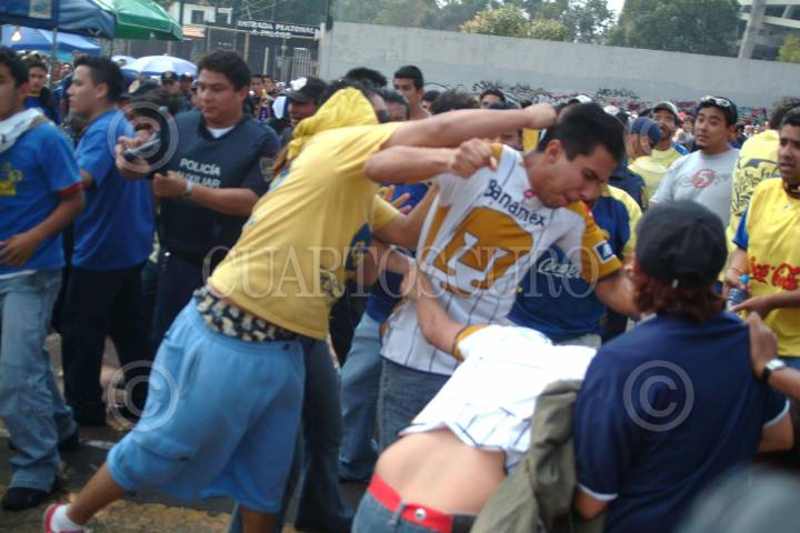 MEXICO, D.F. 17OCTUBRE2004.- Aficionados del equipo de futbol América golpearon a sus similares del equipo Pumas al terminar el encuentro afuera del estadio azteca. FOTO: Iván Stephens/CUARTOSCURO.COM