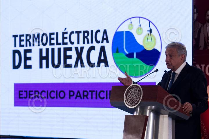 CIUDAD DE MÉXICO, 22FEBRERO2019.- Andrés Manuel López Obrador, presidente de México, y Frédéric Vacheron, representante de la UNESCO, durante la conferencia matutina donde firmó un acuerdo en conjunto con la Organización de las Naciones Unidas para la Educación, la Ciencia y la Cultura (UNESCO) y la Organización de las Naciones Unidas (ONU) para realizar pruebas que constaten que el proyecto de la termoeléctrica no afectará el agua de los estados. Asimismo, el jefe del ejecutivo anunció que se realizará una segunda subasta de vehículos de lujo para juntar fondos para la Guardia Nacional. FOTO: GALO CAÑAS /CUARTOSCURO.COM