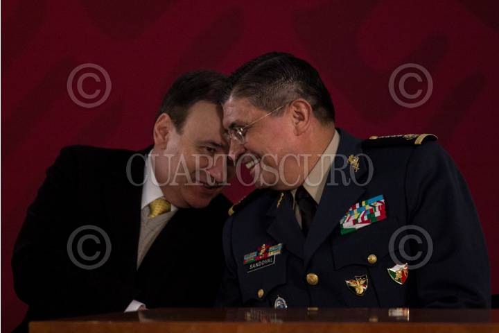 CIUDAD DE MÉXICO, 22FEBRERO2019.- Andrés Manuel López Obrador, presidente de México, y Frédéric Vacheron, representante de la UNESCO, durante la conferencia matutina donde firmó un acuerdo en conjunto con la Organización de las Naciones Unidas para la Educación, la Ciencia y la Cultura (UNESCO) y la Organización de las Naciones Unidas (ONU) para realizar pruebas que constaten que el proyecto de la termoeléctrica no afectará el agua de los estados. Asimismo, el jefe del ejecutivo anunció que se realizará una segunda subasta de vehículos de lujo para juntar fondos para la Guardia Nacional. FOTO: GALO CAÑAS /CUARTOSCURO.COM