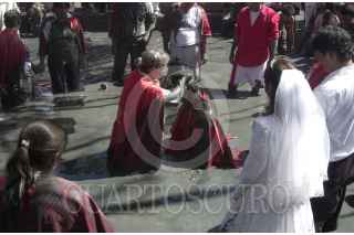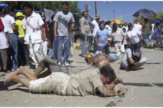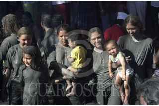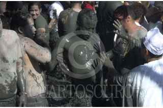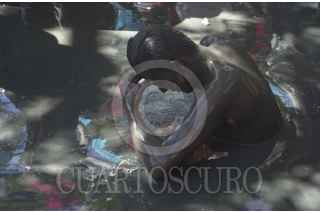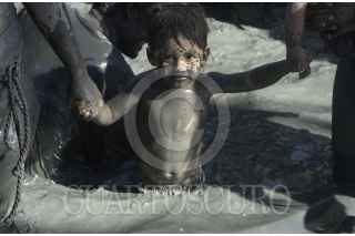 MINA, NUEVO LEON17OCTUBRE.2004.- Bajo la sombra de un pirul, precisamente en el chaquito donde el ñiño Fidencio curaba a personas de bajos recursos hasta 1938, fecha en que murió de cansancio, este hombre se baña en el lodo con la esperanza de sanar su males, igual que decenas de seguidores de Fidencio procedentes del país de EEUU. FOTO:PEDRO VALTIERRA/CUARTOSCURO.COM
