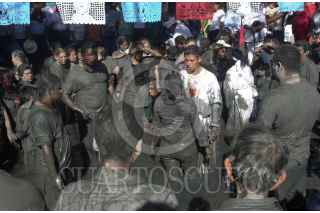 MINA, NUEVO LEON17OCTUBRE.2004.- Decenas de segudores del niño Fidencio, de México y EEUU principalmente, llegaron hoy a Espinazo para meterse al Charquito y darse un baño con lodo guiados por un medium o cajita, que reencarna a Fidencio, y también para celebrar un año mas de su nacimiento que fue 1898. FOTO:PEDRO VALTIERRA/CUARTOSCURO.COM