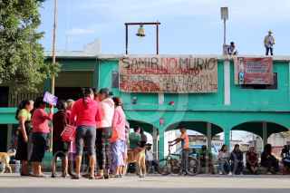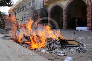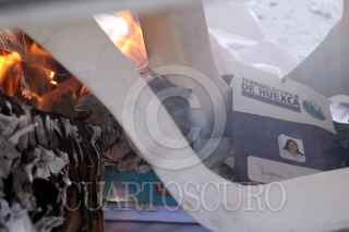 TEMOAC, MORELOS, 23FEBRERO2019.- Opositores al funcionamiento de la Central de Ciclo Combinado de la Comisión Federal de Electricidad (central termoeléctrica de Huexca, Yecapixtla) queman papeletas y mobiliario de la consulta que se realiza en este municipio. FOTO: MARGARITO PÉREZ RETANA /CUARTOSCURO.COM