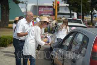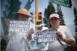 XALAPA, VERACRUZ., 23FEBRERO2019.- Dulce María Méndez de la Luz Dauzón, diputada federal del partido Movimiento Ciudadano, junto con un grupo de personas colocaron calcomanías a vehículos que circulaban en el crucero de la Araucaria, para manifestarse a favor de que apoyos económicos se entreguen directamente a estancias infantiles. FOTO: ALBERTO ROA /CUARTOSCURO.COM