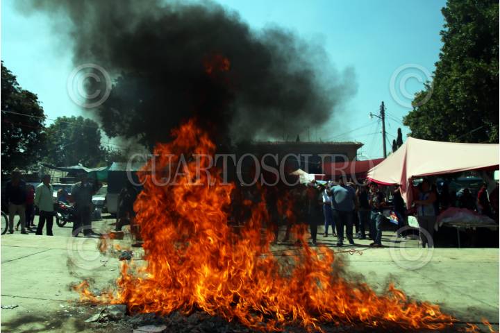 TEMOAC, MORELOS, 24FEBRERO2019.- Habitantes de Amilcingo que se oponen a la consulta sobre el funcionamiento de la termoeléctrica de Huexca regresan del municipio de Jonacatepec donde sustrajeron dos urnas con votos de mesas receptoras. Las boletas después fueron quemadas en la plaza central del poblado. A unas horas que termine este ejercicio promovido por el gobierno federal se vive una tensión creciente en el oriente del estado. En la imagen opositores reaccionan a la vigilancia que hace sobre ellos la Comisión Estatal de Seguridad con un helicóptero. FOTO: ESPECIAL /CUARTOSCURO.COM