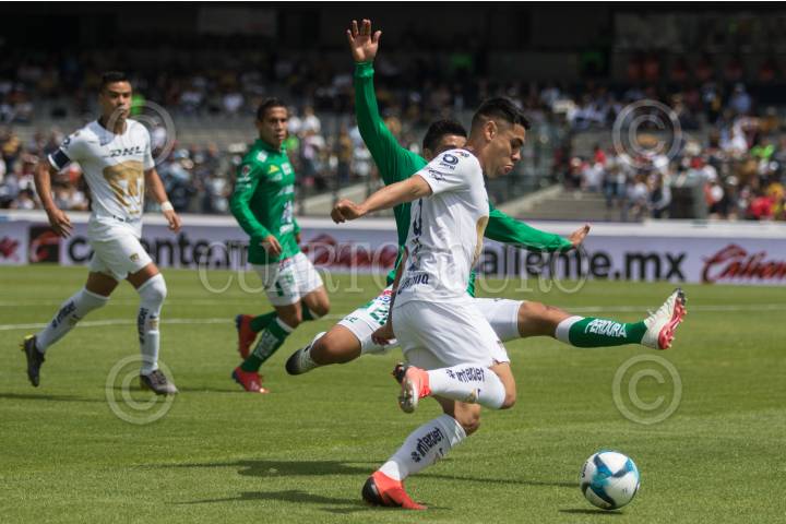 CIUDAD DE MÉXICO, 24FEBRERO2019.- El delantero del León, Ángel Mena, festeja su anotación con su técnico Ignacio Ambríz, los "panzas verdes" lograron una contundente victoria de 3-1 ante los Pumas de la UNAM, que cayeron ante su afición en el Estadio Olímpico Universitario. FOTO: MOISÉS PABLO /CUARTOSCURO.COM
