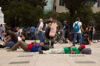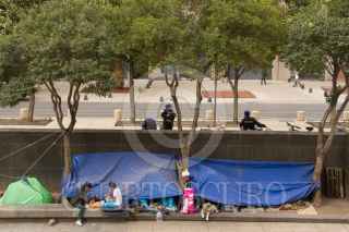 CIUDAD DE MÉXICO, 24FEBRERO2019.- Personas en situación de calle que viven en los alrededores del Monumento a la Revolución pasan la tarde del domingo descansando, en lugares donde pueden cubrirse del sol y en casas improvisadas con lonas y cobijas. FOTO: ROGELIO MORALES /CUARTOSCURO.COM