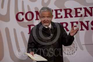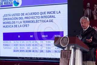 CIUDAD DE MÉXICO, 25FEBRERO2019.- Andrés Manuel López Obrador, presidente de México, durante su conferencia matutina para informar los resultados del conteo de votos tras la consulta ciudadana para el proyecto de la termoeléctrica en Morelos. El jefe del ejecutivo se dijo satisfecho con este ejercicio democrático. Asimismo, López Obrador mandó sus felicitaciones al director Alfonso Cuarón, tras la ceremonia de los Oscares, el día de ayer. Donde el mexicano consiguió tres estatuillas por su cinta Roma. FOTO: GALO CAÑAS /CUARTOSCURO.COM