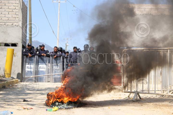ACAPULCO, GUERRERO, 25FEBRERO2019.- Elementos de la policía estatal antimotines desalojaron alrededor de mas de 250 personas que se manifestaban en el exterior del centro de reinserción social de Acapulco ubicado en Las Cruces quienes exigían mejor trato a internos. Los manifestantes arribaron al penal de Las Cruces alrededor de las 11 de la mañana donde mostraron cartulinas lanzaron consignas contra el director del penal por el cobro de piso dentro de la penitenciaria y quemaron llantas en la entrada principal de la pluma para exigir qué terminé la corrupción en el interior de la cárcel. Los inconformes aseguraron que una banda criminal opera al interior del penal de Las Cruces que exige pago a los internos para no asesinarlos aseguraron que también se ha presentado muerte sospechosa de presos por inesperados “paros cardíacos”. FOTO: BERNANDINO HERNÁNDEZ /CUARTOSCURO.COM