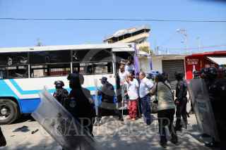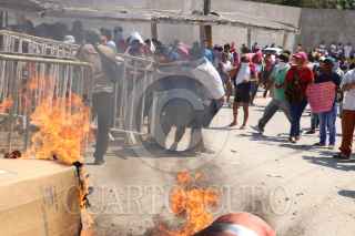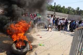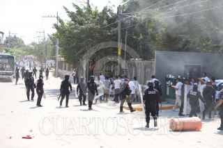 ACAPULCO, GUERRERO, 25FEBRERO2019.- Elementos de la policía estatal antimotines desalojaron alrededor de mas de 250 personas que se manifestaban en el exterior del centro de reinserción social de Acapulco ubicado en Las Cruces quienes exigían mejor trato a internos. Los manifestantes arribaron al penal de Las Cruces alrededor de las 11 de la mañana donde mostraron cartulinas lanzaron consignas contra el director del penal por el cobro de piso dentro de la penitenciaria y quemaron llantas en la entrada principal de la pluma para exigir qué terminé la corrupción en el interior de la cárcel. Los inconformes aseguraron que una banda criminal opera al interior del penal de Las Cruces que exige pago a los internos para no asesinarlos aseguraron que también se ha presentado muerte sospechosa de presos por inesperados “paros cardíacos”. FOTO: BERNANDINO HERNÁNDEZ /CUARTOSCURO.COM