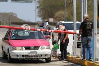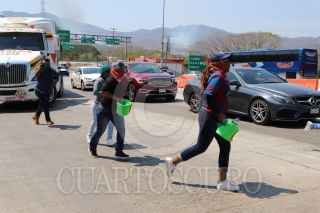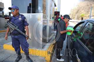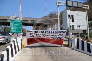 ACAPULCO, GUERRERO, 25FEBRERO2019.- Integrantes del Movimiento por la Libertad de los Presos Políticos del Estado de Guerrero tomaron la caseta de peaje de la venta de la Autopista del Sol, donde pidieron cooperación a los automovilistas, esto con el argumento de que dos miembros del Consejo de Ejidos y Comunidades Opositoras a la Presa La Parota, fueron liberados, pero se les fue fijada una fianza muy alta, por lo que requieren de recabar fondos para lograr su liberación. FOTO: BERNANDINO HERNÁNDEZ /CUARTOSCURO.COM