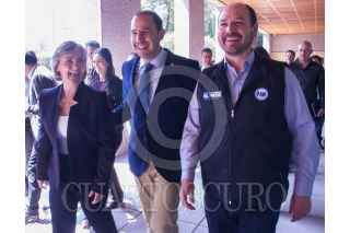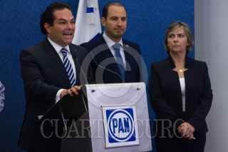 CIUDAD DE MÉXICO, 25FEBRERO2019.- Marko Cortés Mendoza Presidente Nacional del PAN; Yolanda Tellería Beltrán, Presidente Municipal de la Ciudad en Pachuca y Cornelio García, Jefe estatal del partido, después de la rueda de prensa realizada en la sede nacional del partido, que se convocó para tratar el tema de la huelga sindical ante la negativa de la alcaldesa por la exigencia del aumento salarial del 17% en el estado de Pachuca. FOTO: ROGELIO MORALES /CUARTOSCURO.COM
