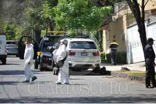CIUDAD DE MÉXICO, 26FEBRERO2019.- El cuerpo de un hombre con un disparo de arma de fuego en la cabeza fue hallado dentro de una camioneta blanca marca BMW, en la calle de Virreyes, esquina con Sierra Tarahumara, en la colonia Lomas Chapultepec, peritos de la procuraduría trabajaron en el lugar para identificar al occiso, las autoridades no descartaron un suicidio. FOTO: ARMANDO MONROY /CUARTOSCURO.COM