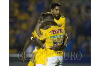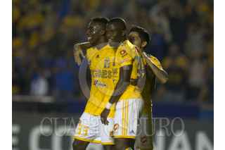 MONTERREY, NUEVO LEÓN, 26FEBRERO2019.- Jugadores del equipo de los Tigres de la UANL, celebran el triunfo, ante el equipo de Saprissa de Costa Rica, en el estadio Universitario, partido correspondiente a la vuelta de los octavos de final de la Concacaf, Liga de Campeones 2019. Marcador Final: Tigres: 5 - Saprissa: 1 Marcador Global: Tigres: 5 - Saprissa: 2 FOTO: GABRIELA PÉREZ MONTIEL /CUARTOSCURO.COM