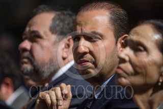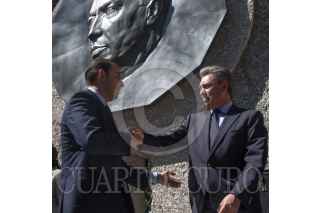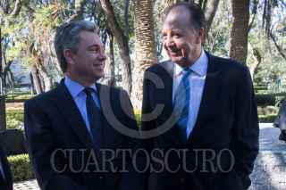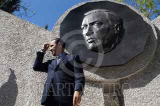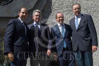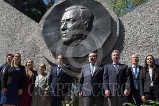 CIUDAD DE MÉXICO, 27FEBRERO2019.- Manuel Gómez Morín Martínez del Río y Juan Pablo Gómez Morín Rivera, durante la celebración del 122 aniversario del natalicio de Manuel Gómez Morín fundador del Partido Acción Nacional, cuyos integrantes colocaron una ofrenda floral en el monumento que esta colocado en honor del Chihuahuense, en la colonia Del Valle. FOTO: MOISÉS PABLO /CUARTOSCURO.COM