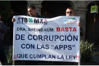 CIUDAD DE MÉXICO, 27FEBRERO2019.- Daniel Medina, representante de los taxistas, ofreció conferencia de prensa a las afueras de las inmediaciones del Antiguo Palacio del Ayuntamiento, para dar detalles sobre las necesidades y exigencias que tienen los concesionarios en el que prevalece quitar las aplicaciones de movilidad que trabajan en irregularidad y sin permisos, las cuales les quitan al menos 40% de ganancia. FOTO: ANDREA MURCIA /CUARTOSCURO.COM