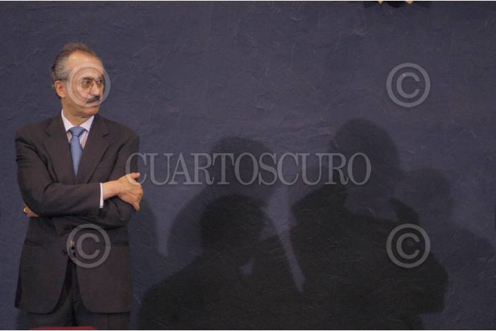 MEXICO D.F. 19OCTUBRE2004.- En la residencia oficial de Los Pinos se presentó el evento, Las PyMES y la Banca, Socios para el Desarrollo. Francisco Gil Díaz, Secretario de Hacienda junto a las sombras de León Halkin de CANACINTRA y de José Luis Barraza del Consejo Coordinador Empresarial. FOTO: Germán Romero/CUARTOSCURO.COM