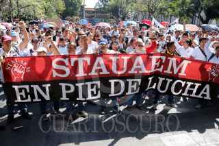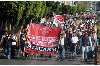 CUERNAVACA, MORELOS, 28FEBRERO2019.- Marcha del Sindicato de Trabajadores Administrativos de la Universidad Autónoma del Estado de Morelos, que buscan presionar a las autoridades universitarias y que acepten sus peticiones salariales y laborales. FOTO: MARGARITO PÉREZ RETANA /CUARTOSCURO.COM