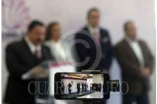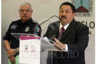 CUERNAVACA, MORELOS, 28FEBRERO2019.- Conferencia de prensa de José Antonio Ortíz Guarneros, comisionado de Seguridad Pública, y Uriel Carmona Gándara, fiscal general. Los funcionarios acusaron a la familia de Samir Flores (uno de los más representativos opositores al funcionamiento de la termoeléctrica de Huexca, en Yecapixtla) de ocultar la cartulina que presuntamente contenía un mensaje del crimen organizado, y que habría sido dejada en el lugar de su homicidio. También enlistaron seis líneas de investigación sobre el crimen en las que incluye la participación del crimen organizado, alguien del gobierno, su oposición a la termoeléctrica, un conflicto laboral con el municipio de Temoac, su actividad de comunicador en la radiodifusora del poblado de Amilcingo y un conflicto por un plantel educativo. Además, criticaron a los medios de comunicación por “enrarecer” las investigaciones. FOTO: MARGARITO PÉREZ RETANA /CUARTOSCURO.COM