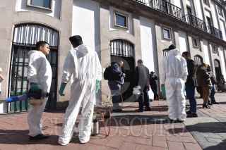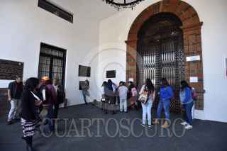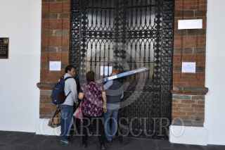TOLUCA, ESTADO DE MÉXICO, 28FEBRERO2019.- Por varias horas fueron interrumpidas las actividades en el ayuntamiento de Toluca, trabajadores y ciudadanos que acudieron a realizar algún trámite encontraron un anuncio en donde informaban que estarían los edificios fuera de servicio por un programa de fumigación y control de plagas; el edificio fue cerrado previo a llevarse a cabo una diligencia de embargo por adeudo a una empresa de construcción. FOTO: ARTEMIO GUERRA BAZ /CUARTOSCURO.COM