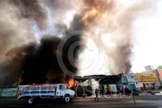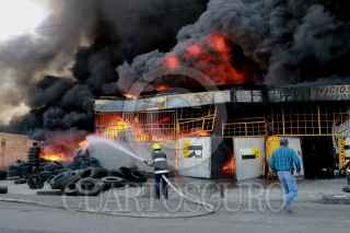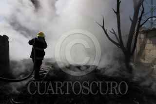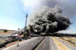 HUAMANTLA, TLAXCALA. 02MARZO2019.- Un fuerte incendio consumió por completo una Talacheria que también funcionaba como deposito de llantas, en la carretera Apizaco-Huamantla a la altura de la comunidad de Chapultepec, sin que se reportara personas lesionadas. Los elementos del heroico cuerpo de bomberos del estado de Tlaxcala acudieron al lugar después de recibir una llamada de emergencia a las 13:20 horas. Se consumieron alrededor de 300 neumáticos los que provoco una enorme columna de humo negro de se alcanzaba a ver a varios kilómetros de distancia. FOTO: JOAQUÍN SANLUIS /CUARTOSCURO.COM