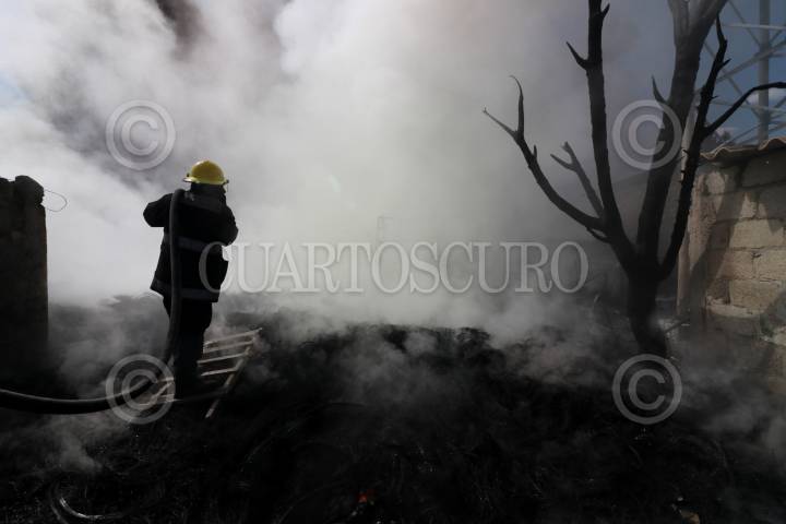HUAMANTLA, TLAXCALA. 02MARZO2019.- Un fuerte incendio consumió por completo una Talacheria que también funcionaba como deposito de llantas, en la carretera Apizaco-Huamantla a la altura de la comunidad de Chapultepec, sin que se reportara personas lesionadas. Los elementos del heroico cuerpo de bomberos del estado de Tlaxcala acudieron al lugar después de recibir una llamada de emergencia a las 13:20 horas. Se consumieron alrededor de 300 neumáticos los que provoco una enorme columna de humo negro de se alcanzaba a ver a varios kilómetros de distancia. FOTO: JOAQUÍN SANLUIS /CUARTOSCURO.COM