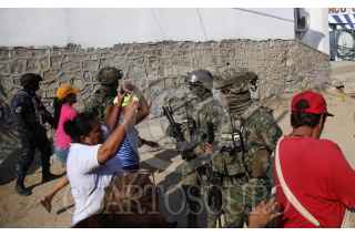 XALTIANGUIS, GUERRERO, 04MARZO2019.- Pobladores de Xaltianguis realizaron un bloqueo en su comunidad para evitar que elementos de la Marina, Ejercito y Policías desarmaran a policías comunitarios, luego que durante el fin de semana policías comunitarios protagonizaron varios enfrentamientos con otro grupo contrario con el cual disputan el control de la seguridad de esa comunidad perteneciente a la zona rural de Acapulco. FOTO: CARLOS ALBERTO CARBAJAL /CUARTOSCURO.COM