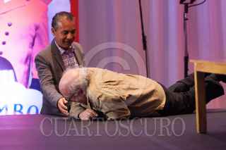 CIUDAD DE MÉXICO, 05MARZO2019.- El actor, director y productor de cine estadounidense, Danny DeVito, ofreció conferencia de prensa con motivo del estreno de la cinta “Dumbo”, el próximo 29 de marzo. DeVito destacó el proceso de creación y la mancuerna que hizo junto con el director Tim Burton. Sin embargo, minutos antes del inicio de la rueda de prensa el actor sufrió una caída en el escenario, que no impidió el buen humor de quien interpreta a Medici en el filme. FOTO: GALO CAÑAS /CUARTOSCURO.COM