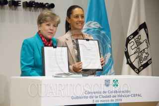 CIUDAD DE MÉXICO, 05MARZO2019.- Claudia Sheinbaum, jefa del Gobierno de la Ciudad, y Alicia Barcena Secretaria General de la Cepal, firmaron un convenio este medio día en el salón Los Murales del Antiguo Palacio del Ayuntamiento de la Capital. FOTO: VICTORIA VALTIERRA / CUARTOSCURO.COM